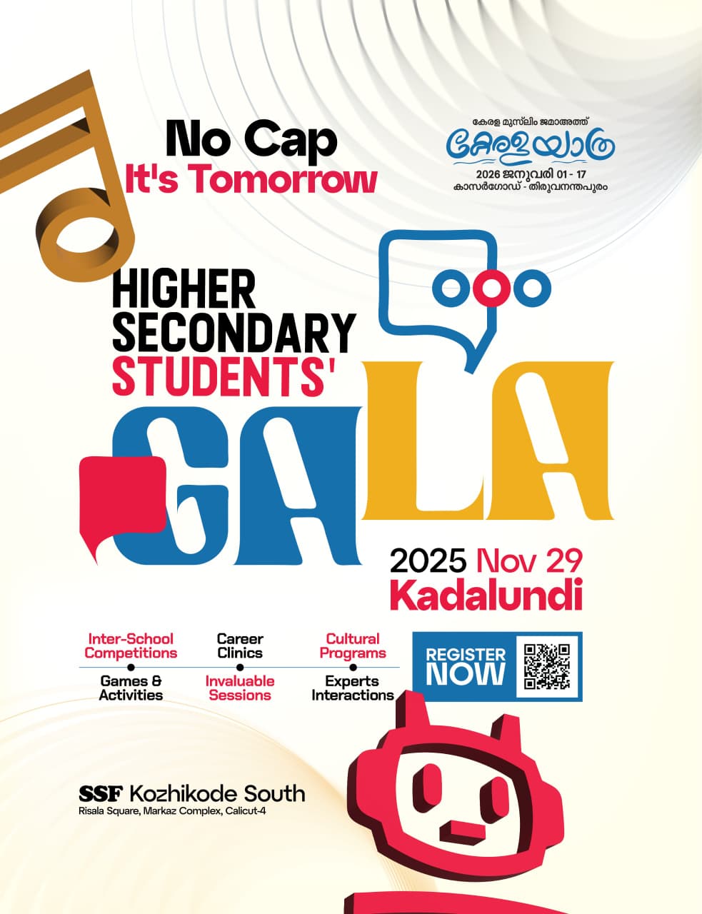 Students' Gala, a district-level celebration of knowledge, creativity, and innovation! Bringing together thousands of higher secondary students, Students Gala 2025 features inspiring sessions on higher education, entrepreneurship, AI, and emerging technologies, along with vibrant arts competitions and team activities.